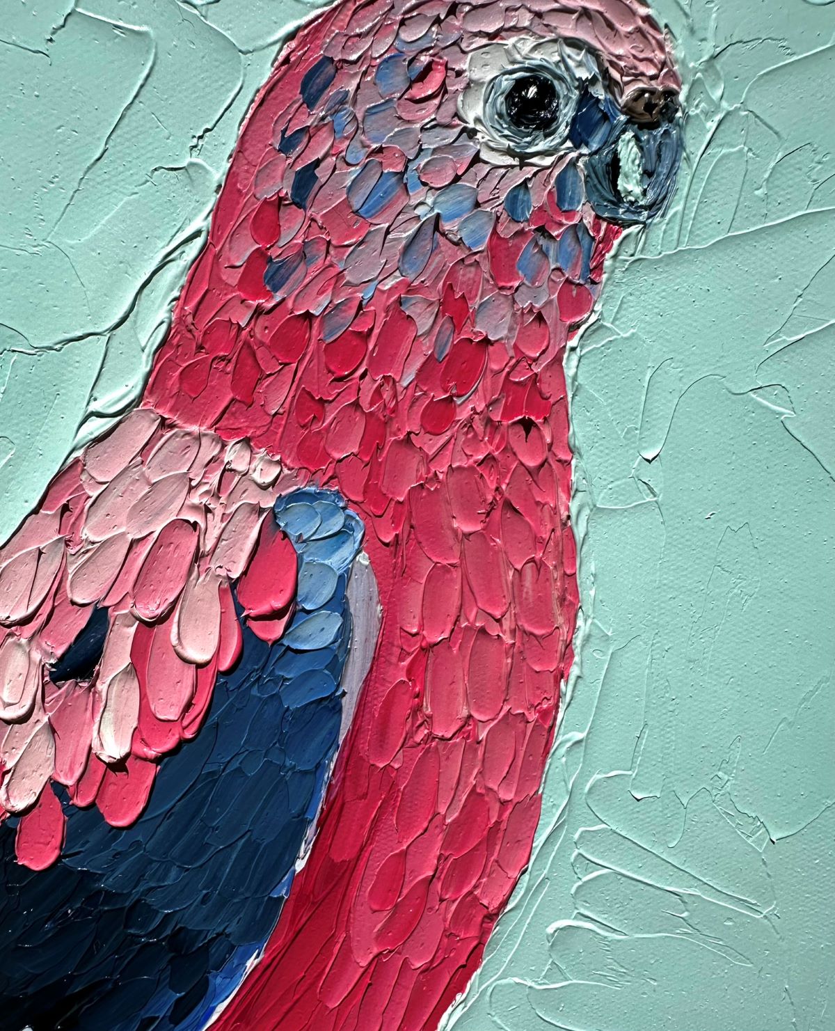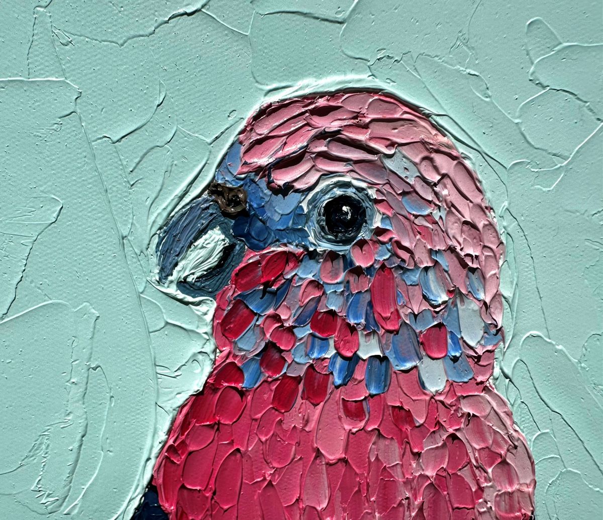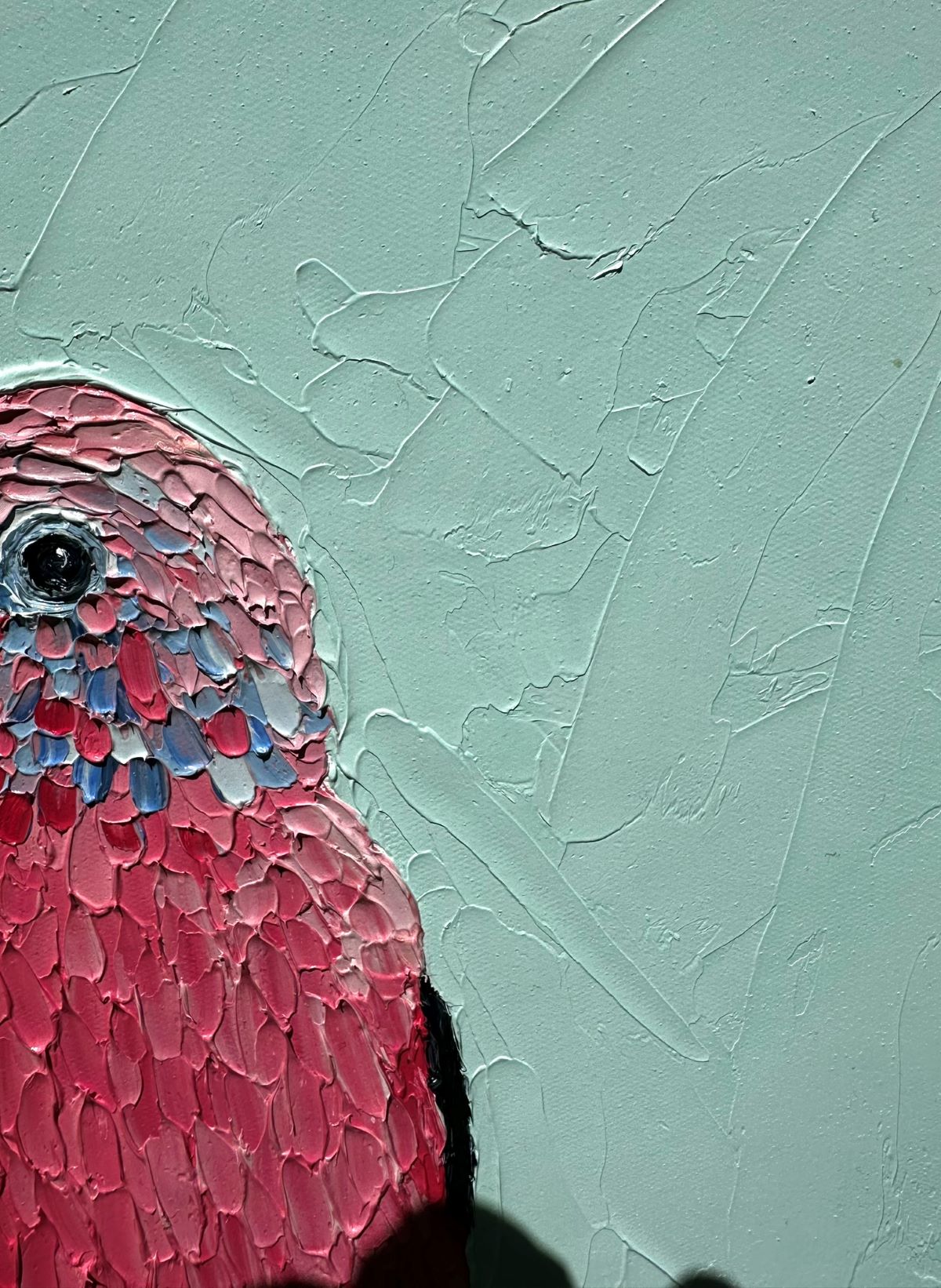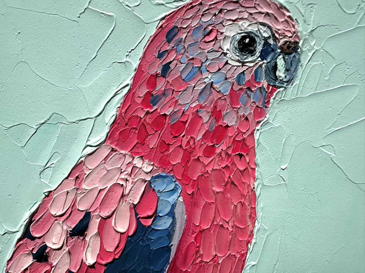 Created with palette knives, this painting celebrates texture and movement. Every feather carries depth and life, while the soft pinks and gentle blues invite joy into your space. It’s a heartfelt tribute to the beauty of Australian birds and the happiness they bring.