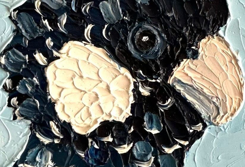 Painted with thick oils and palette knife textures, Cal captures that fluffy, tactile charm. The textured background adds depth and movement, making this cockatoo feel alive on the panel. I painted him as part of a pair, because I love giving each bird a little friend.
