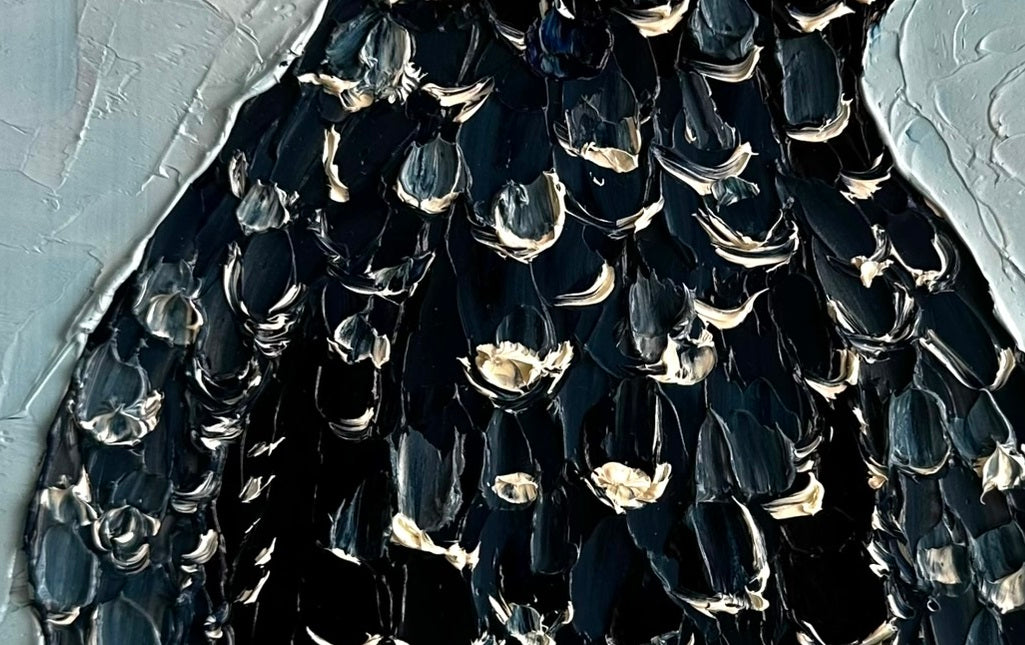 A textured black cockatoo painting, full of charm and Aussie spirit.