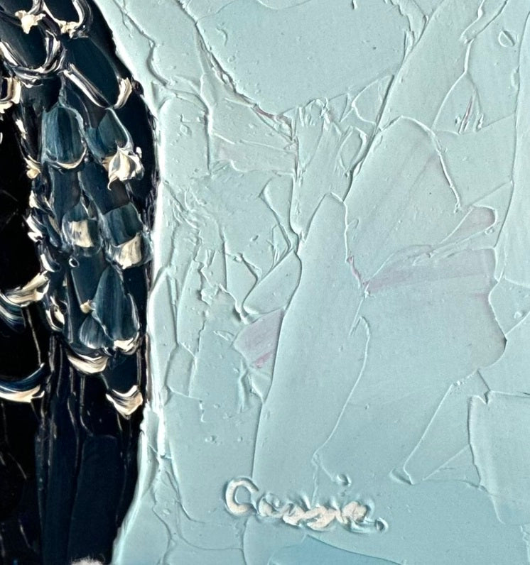 - Textured Detail – Thick oil paint and palette knife strokes bring depth and dimension.