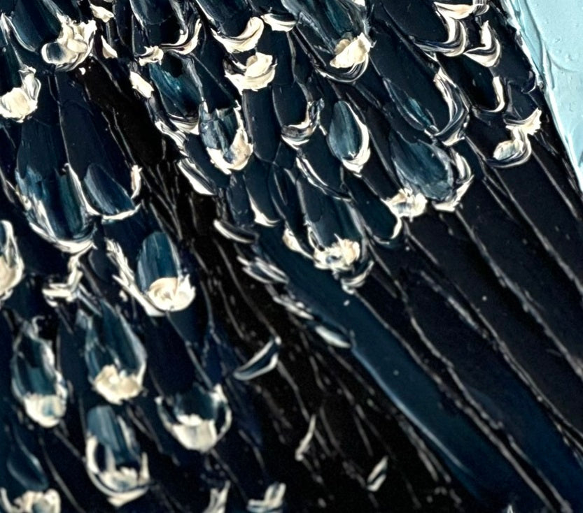 - Textured Detail – Thick oils and palette knives create depth and life in every feather.