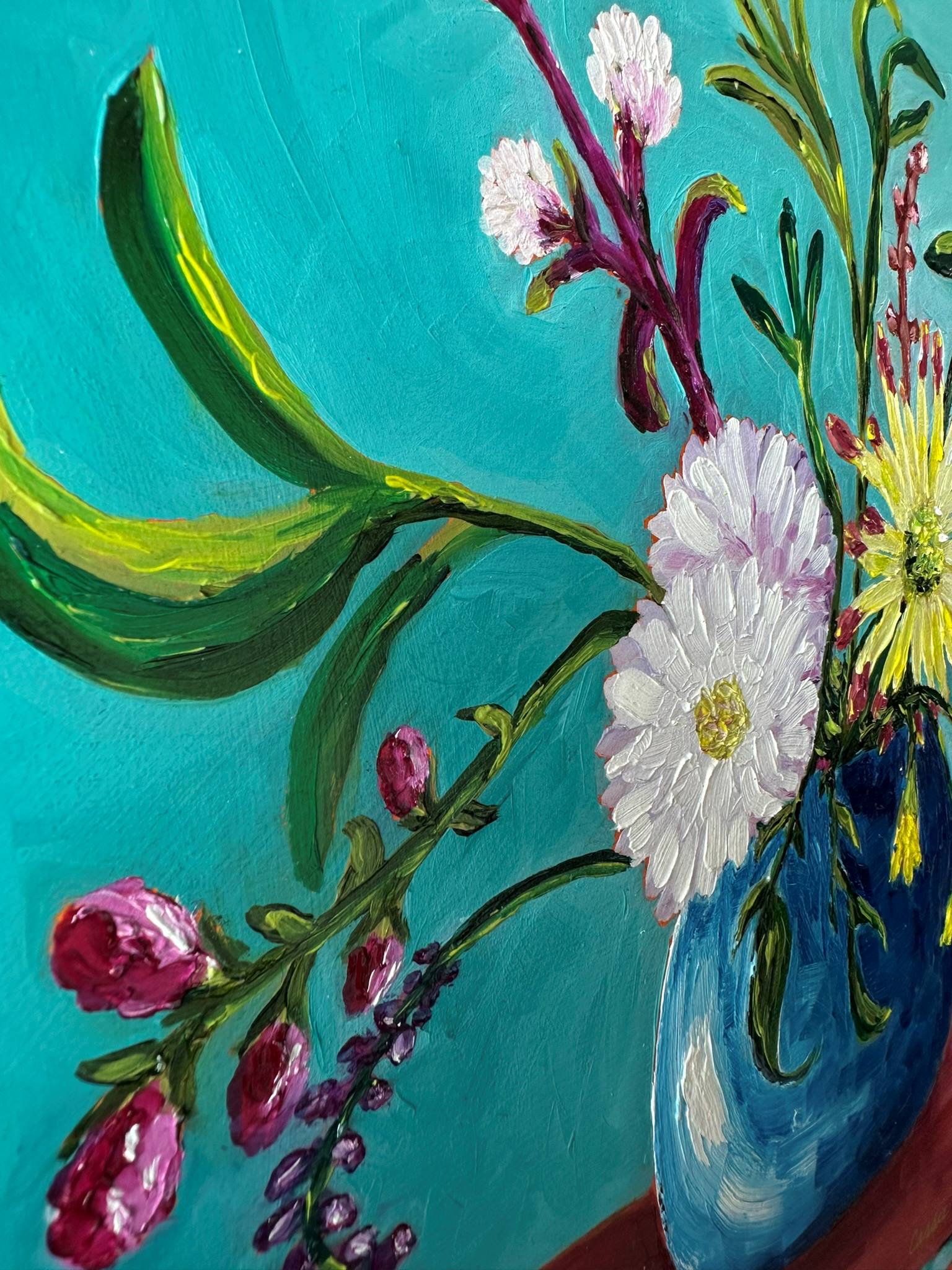 Date Night Flowers captures the simple magic of a lovely weekend away with my husband. While dining in a sweet little restaurant, these flowers sat on our table, so pretty, I couldn’t resist taking a photo to paint them later. This artwork is more than a floral study; it’s a memory painted in oils, celebrating beauty, connection, and joy.