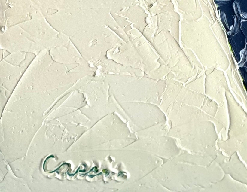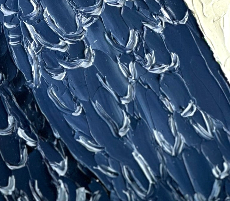 - Rich Texture – Thick oil paint and palette knife strokes add depth.