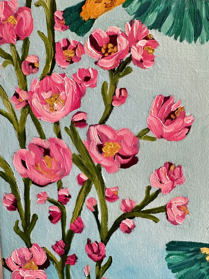 - Rich Texture – Gentle brushwork adds depth and movement to feathers and flowers.
