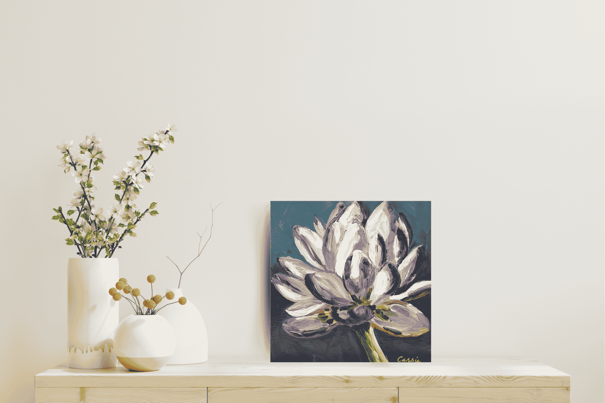 - Unique Original – A one-of-a-kind floral artwork by Cassie Holmes.