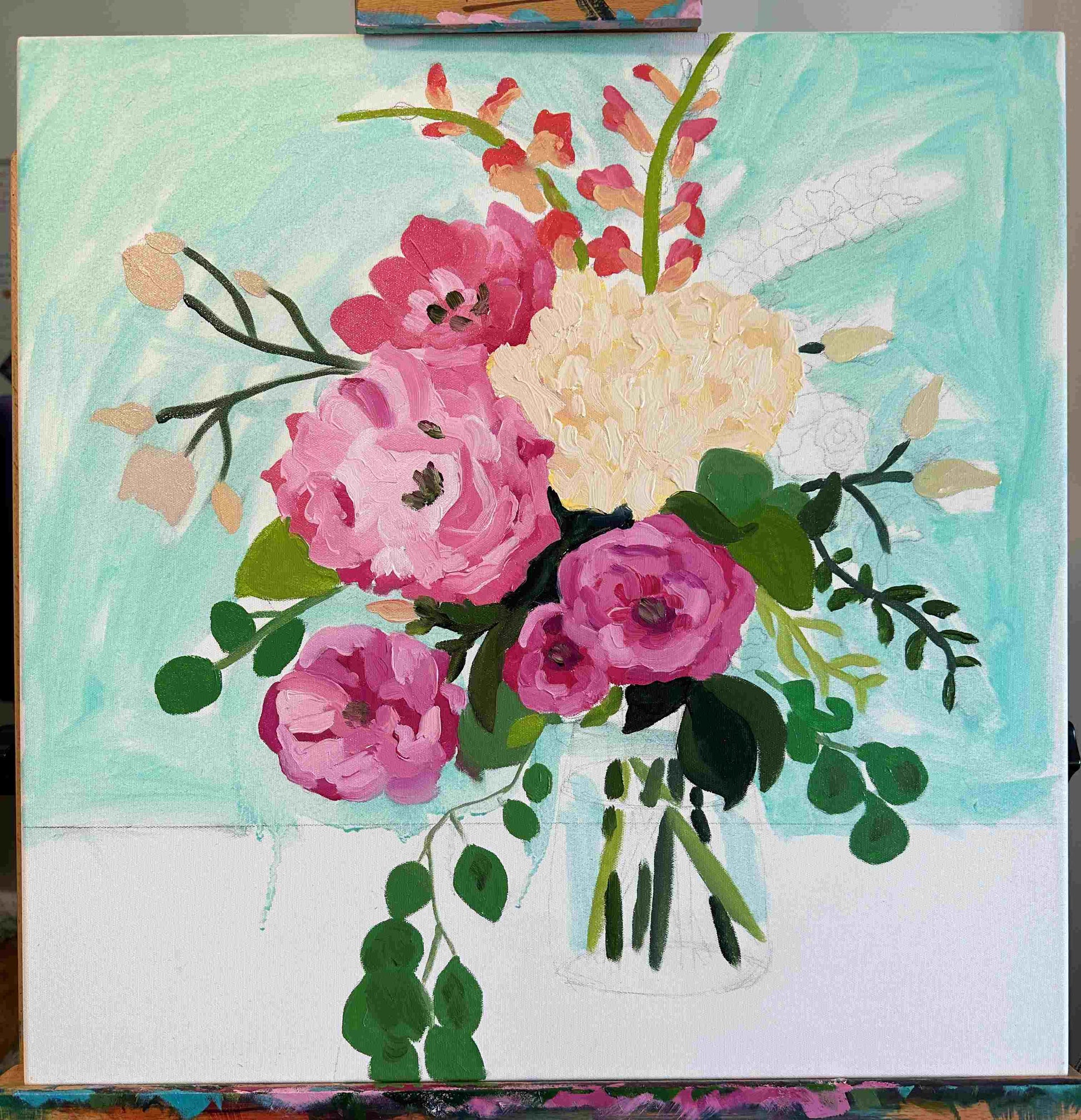 A gentle floral painting that blends soft pinks, blues, and texture to bring calm and elegance into your home.